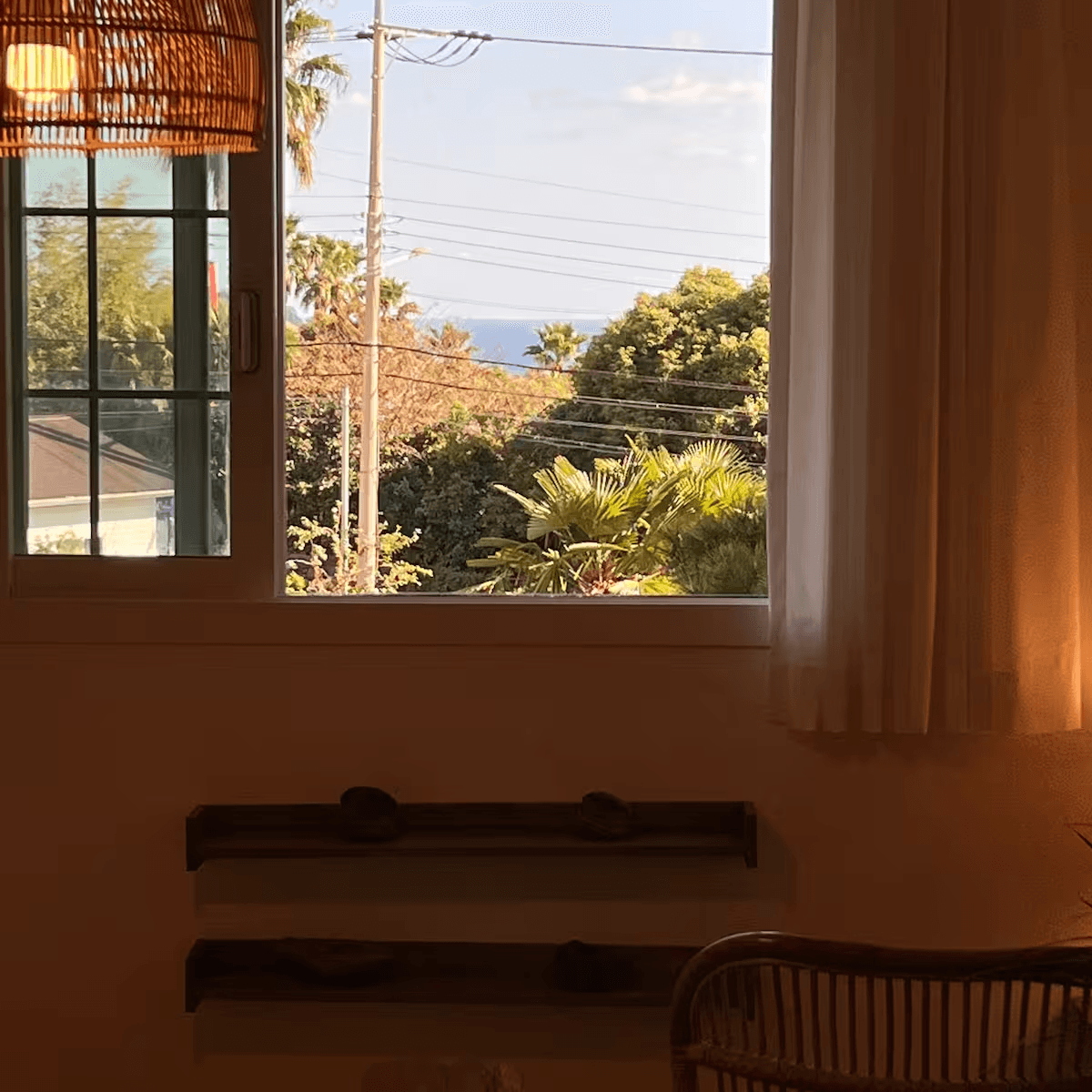 남동쪽을 향해 있는 큰 창 너머로 아름다운 서귀포 바다와 범섬을 바라볼 수 있는 ‘섬’ 스튜디오. 날씨가 좋다면 객실이나 섬 건물의 옥상에 서서 따뜻한 오렌지빛 노을을 보실 수 있습니다. 이 공간에 머무는 시간만큼은 온전하게 아름다운 당신의 일상으로 보낼 수 있기를 바라는 마음으로 준비했습니다.